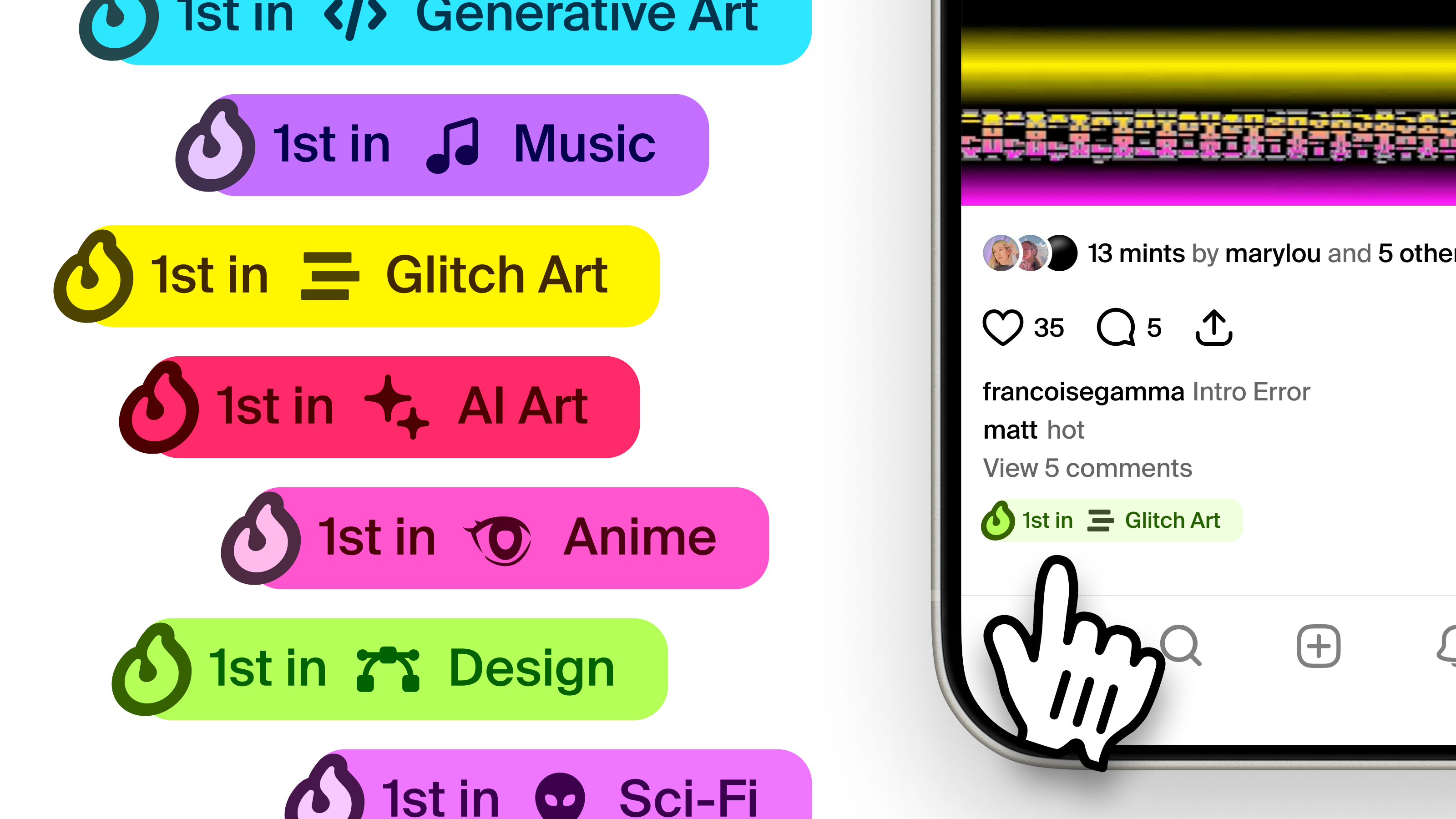 If your post makes it to the top slot in a category, we’ll label it as such in people’s feeds, and badge the post on the category page 🎉