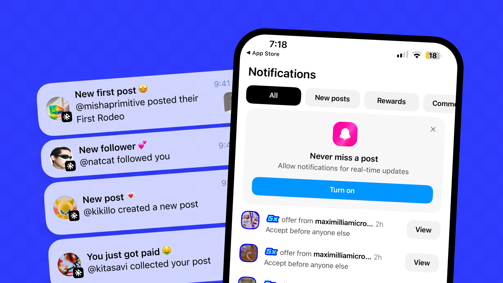 This is how you never miss an opportunity—get real-time updates on new posts, rewards, comments and more. Just turn push notifications on and stay locked in.